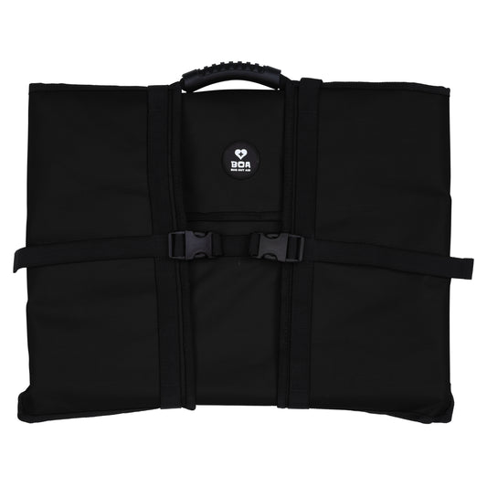 Unlike traditional first aid kits/bags, which are often rigid, box-shaped and bulky, foldable first aid bags are designed to be flexible and compact. They typically feature multiple compartments and pockets for better organization and easy access to supplies. Additionally, their foldable design allows for space-saving storage when not in use. BOA foldable first aid bags offers a hangable strap for even more convience.